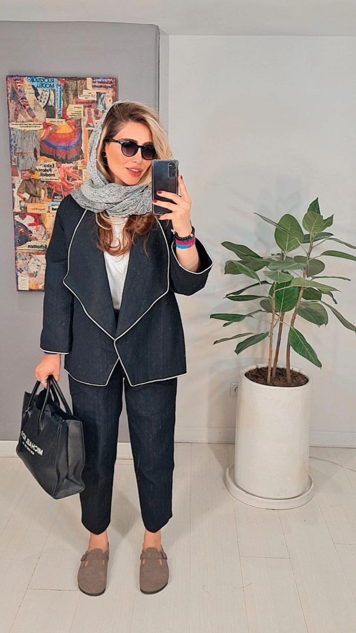 کت زنانه پاییزه مشکی نواردوزی TD۶۴