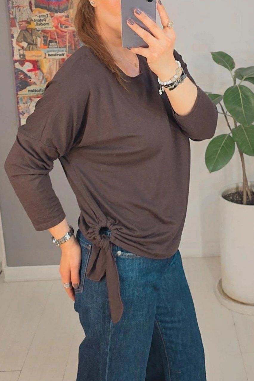 بلوز ایتالیایی با آستین های کیمونو بلوز کیمونو ایتالیایی در ۳ رنگ قهوه ای سرمه ای و زرشکی که همگی رنگ های تِرِند ۲۰۲۶ هستند این بلوزهای ایتالیایی بافتی بسیار نرم و لطیف و سبُک دارند بغل این بلوزهای ایتالیایی توسط یک حلقه ای گره زده شده است که مدل این بلوزها رو بسیار جذاب و خاص کرده است