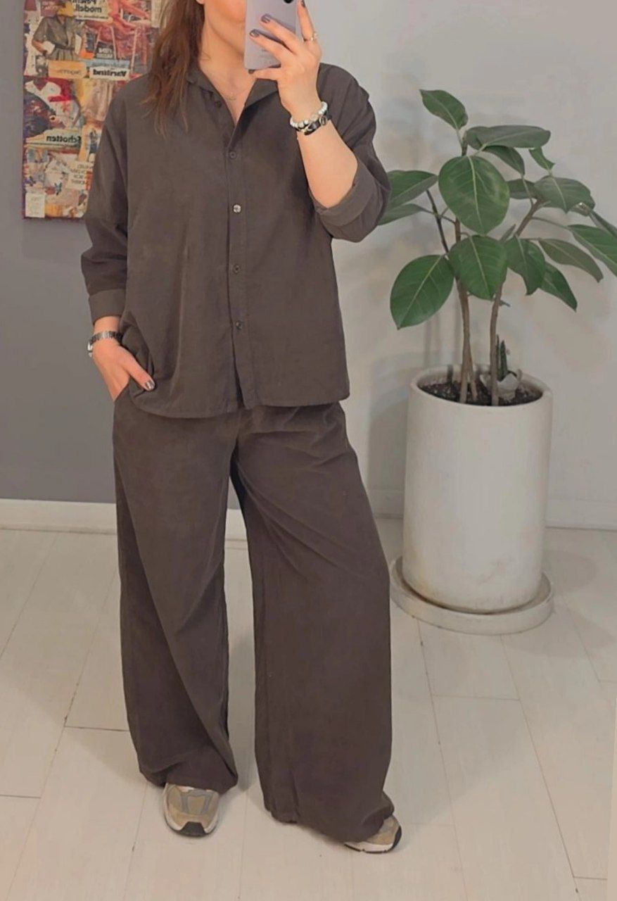 سِت شومیز و شلوار کبریتی ایتالیایی با رنگ قهوه ای که تِرِند سال ۲۰۲۶ می باشد این ست بسیار راحت و سبُک می باشد یک سِت ایتالیایی فری سایز تا سایز ۴۸ پیشنهاد میشود و بسیار مناسب سفرهای داخلی و خارجی می باشد این ست راحت مناسب فصل های پاییز و بهار می باشد و با پوشیدن یک پافر یا کاپشن برای فصل زمستان هم قابل استفاده هست این ست جذاب را می توانید با کفش های کتونی و اسلیپر استایل کنید و خاص به نظر برسید لازم به ذکر است از خصوصیات پارچه های ایتالیایی لطافت و کیفیت بالای پارچه است.