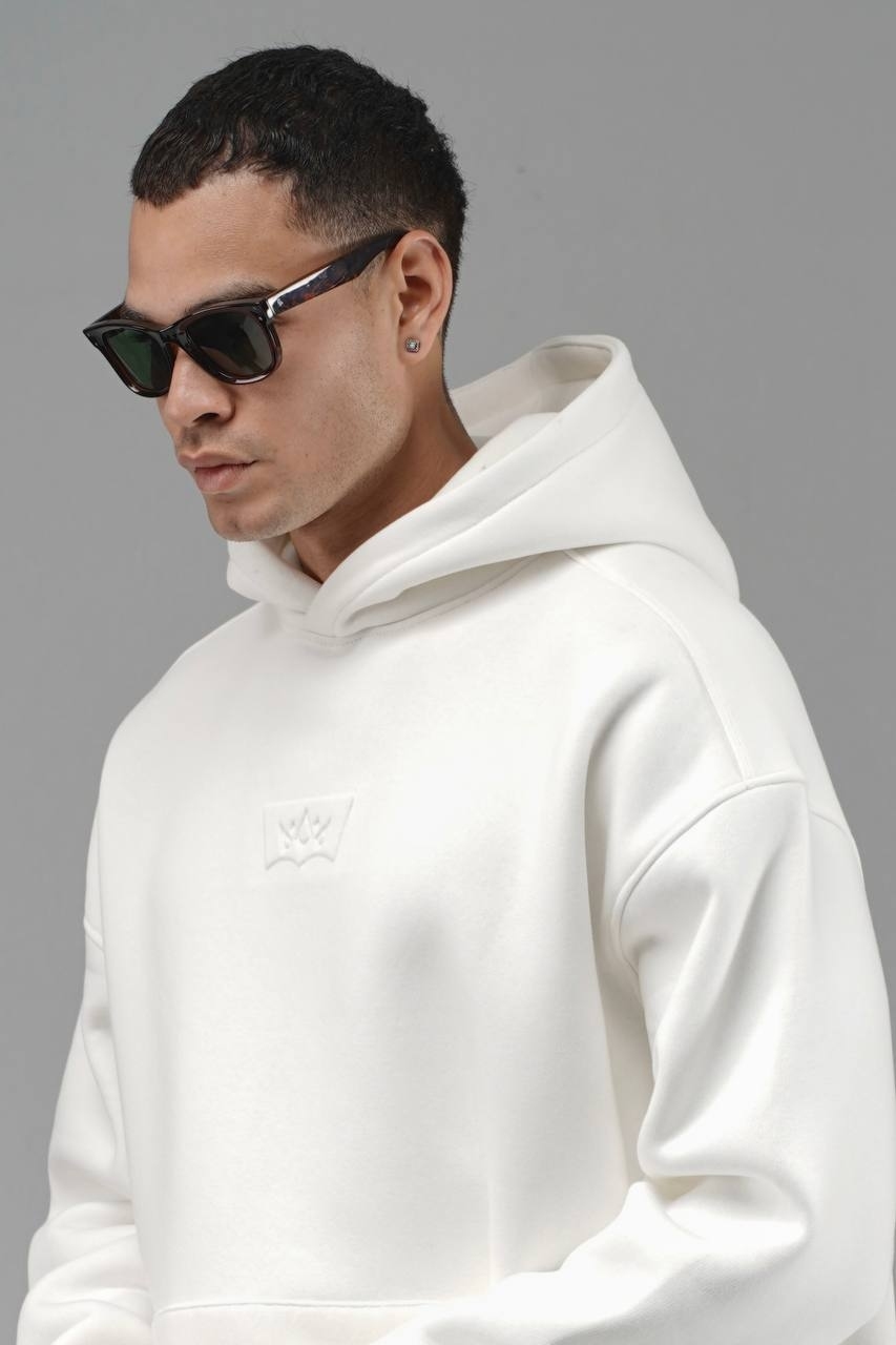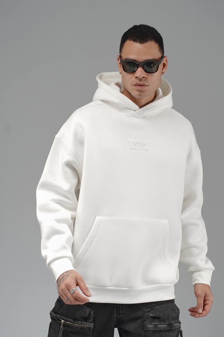بروی هودی سفید طرح تاج کوچک با رنگ سفید برجسته میباشد .