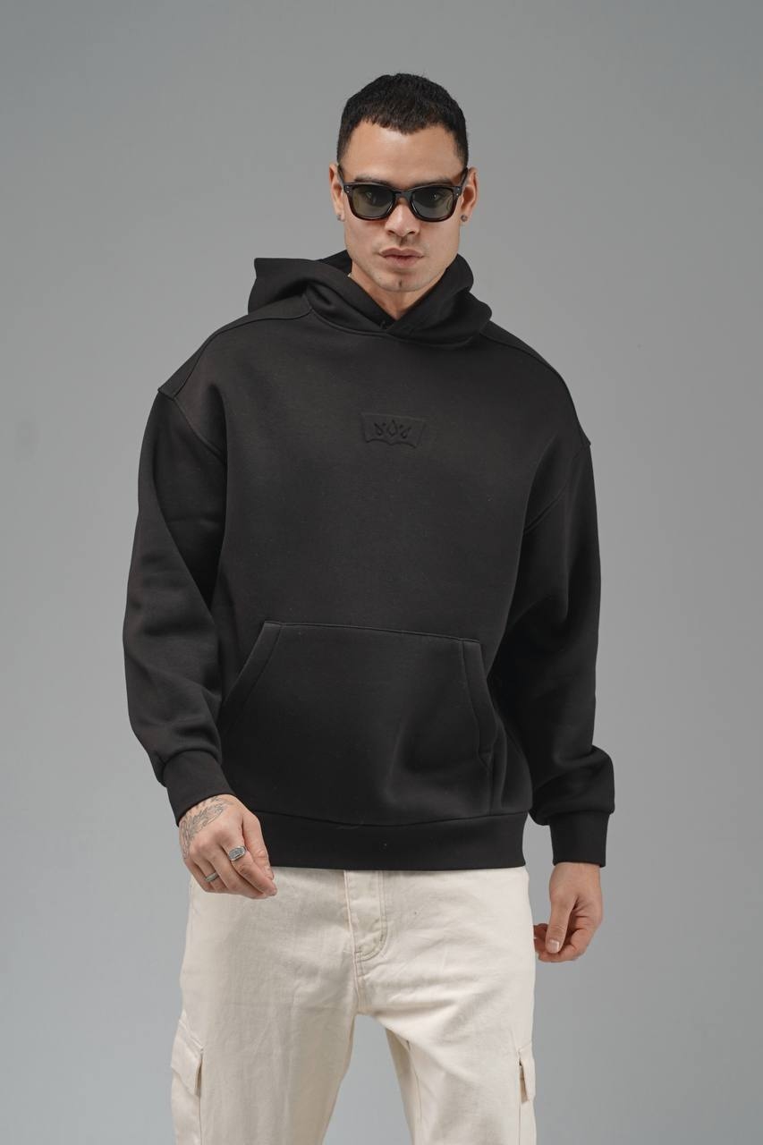 هودی ساده با یک طرح تاج کوچک با رنگ مشکی بروی لباس میباشد .
