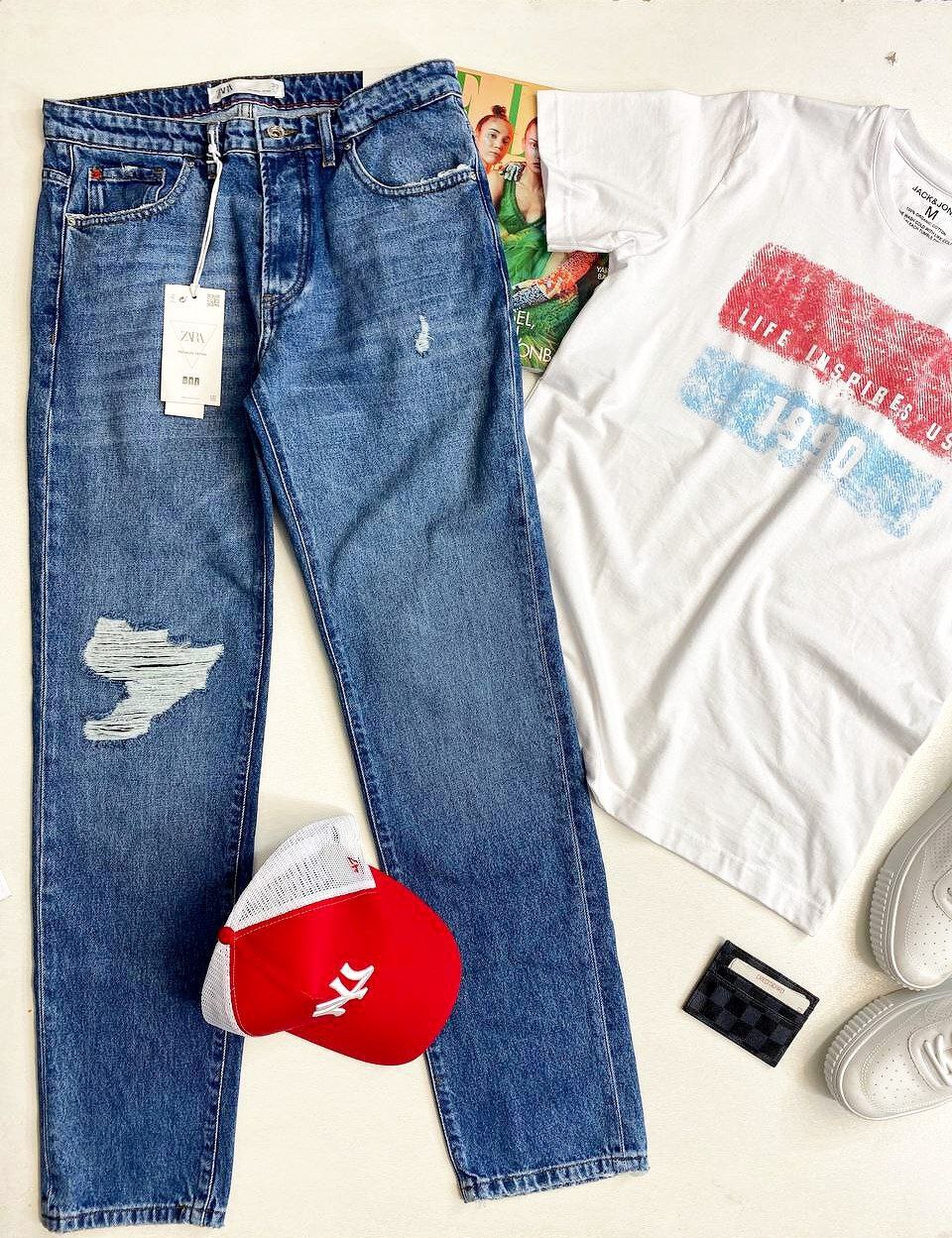 شلوار جین استرایت مردانه زارا رنگ ابی ترک. شلوار جین با مدل استرایت از ترند های امسال هست .