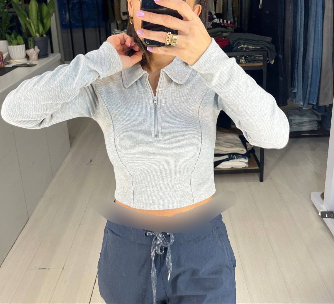 بلوز استین‌بلند نیم زیپ طوسی زنانه ترک pd۱۱۷
