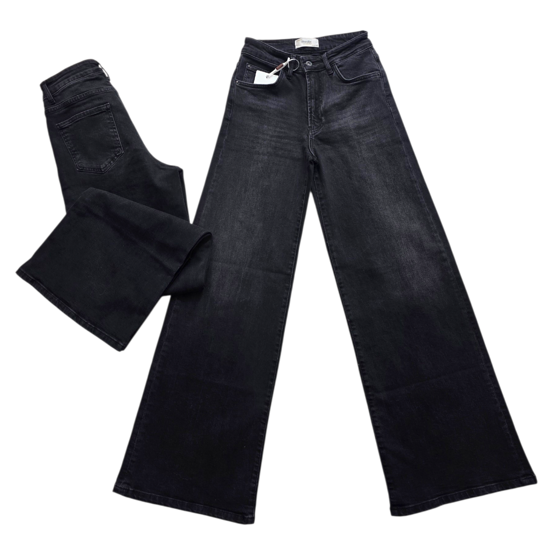 شلوار جین ذغالی ترک مدل واید زنانه