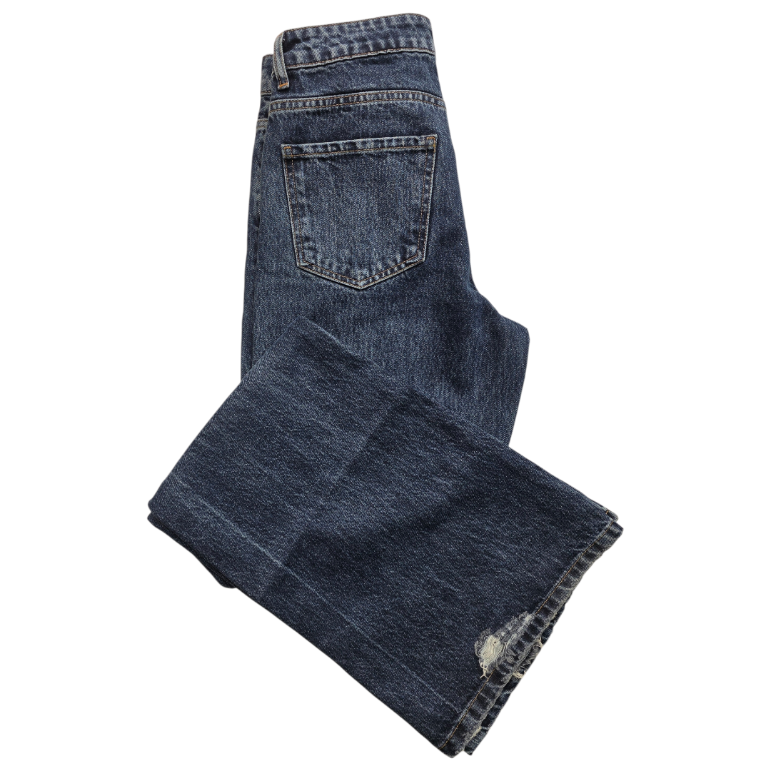 شلوار جین ترک مدل واید زنانه ، مدل شلوار فاق بلند است.