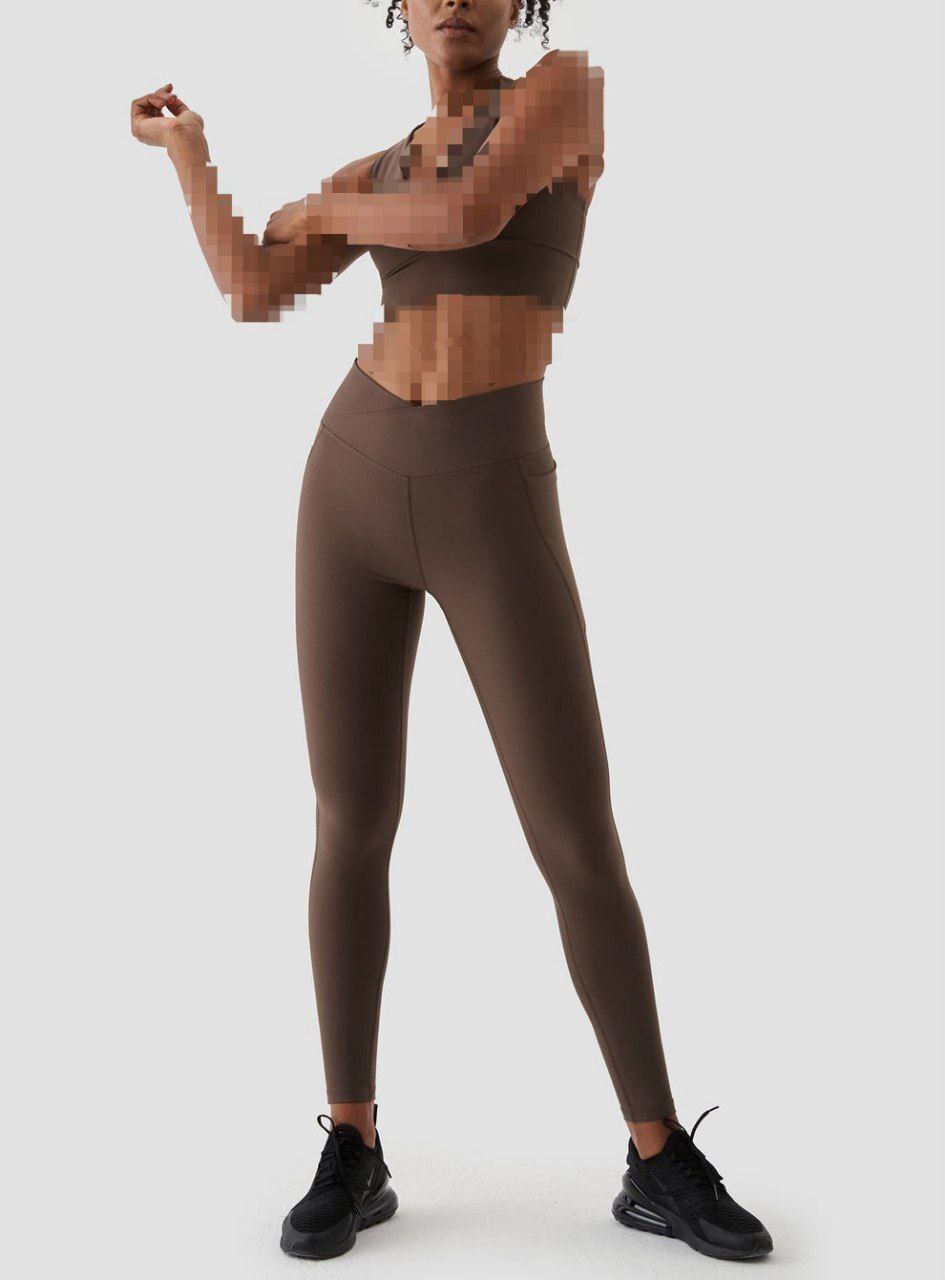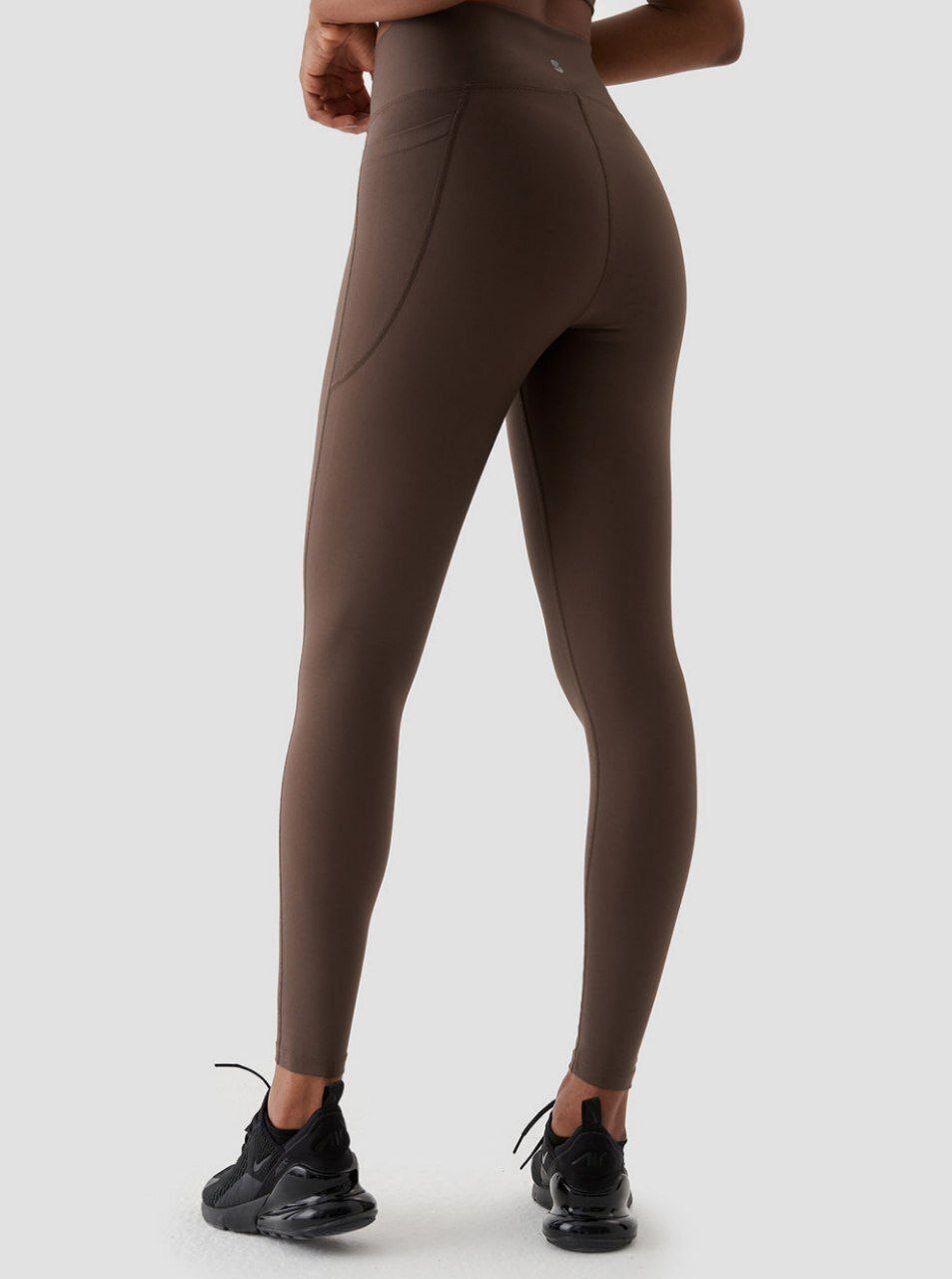 شیکترین جایگزین برای لگ مشکی؛ لگ قهوهای فیتنس با قابلیت ست شدن با رنگهای کرم و خاکی برای استایل روزمره و باشگاه.