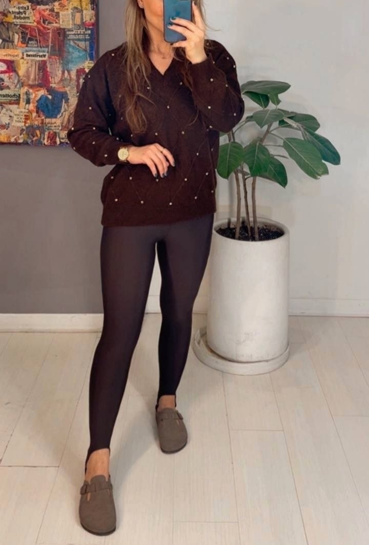 بافت قهوه ای نگین دار ترک زنانه Pd۸۶