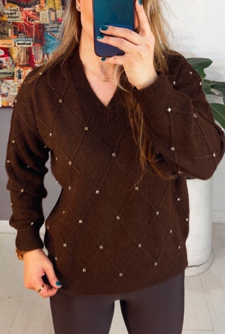 بافت قهوه ای نگین دار ترک . بافت بسیار ساده وشیک که مدل اور سایز میباشد.