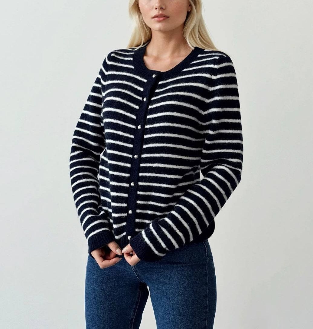 ژاکت بافت راه راه سورمه ای زنانه فیری سایز ترک PD۱۰۴