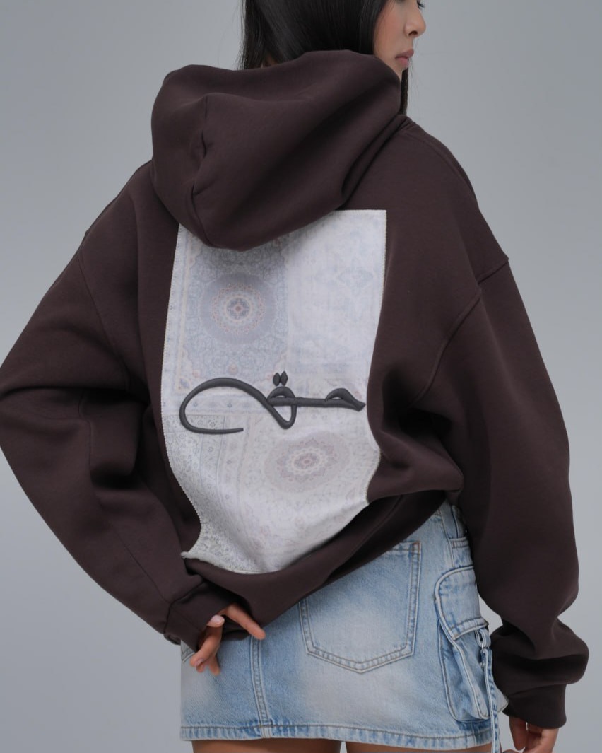 هودی قهوه ای طرح دار تملم گلدوزی میباشد.