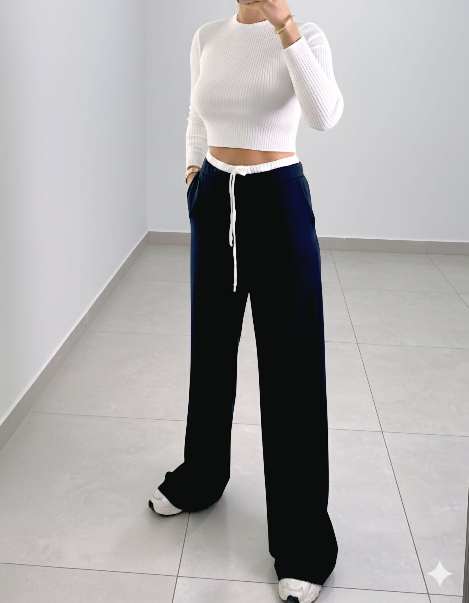شلوار اویشو سرمه ای کمر سفید ترند سال ۲۰۲۶ می باشد.
